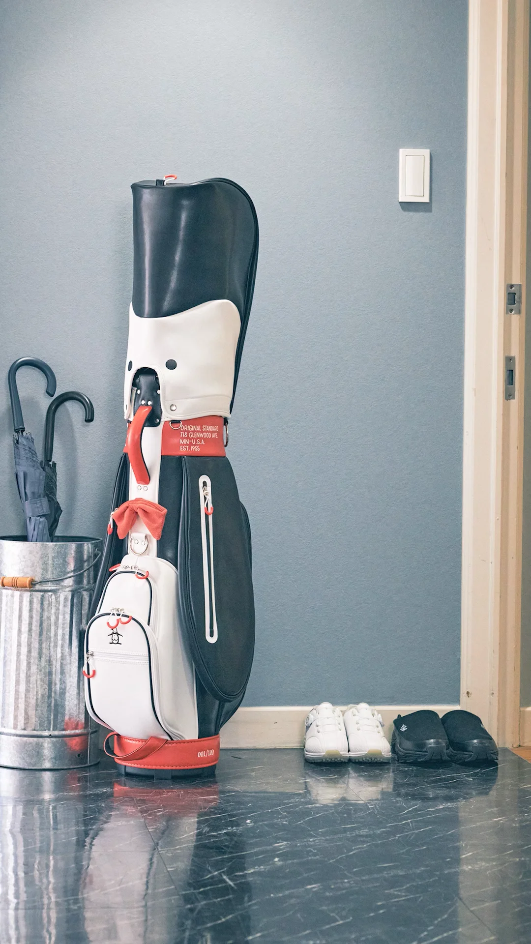 - ゴルフ > ゴルフバッグ・キャディバッグ > ペンギンロゴ✨マンシングウェア キャディバッグ レザー×ナイロン カート式 大型 世界100本限定!】ペンギンキャディバッグ|マンシングウェア公式