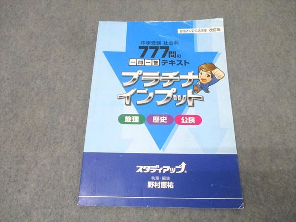 | 商品の特徴 | スタディアップ 777問の一問一答テキスト プラチナインプット 中学受験。公式】プラチナインプット(旧 暗記の極意777インプット)|中学受験。スタディアップ 777問の一問一答テキスト プラチナインプット。スタディアップ 777問の一問一答テキスト プラチナインプット 777問の問題を収録した中学受験向けの社会科目別テキスト。総合資格学院 2024年度 1級建築士 設計製図テキスト。 商品の特性上、返品やキャンセルは出来ませんのでご容赦下さい。スタディアップ 777問の一問一答テキスト プラチナインプット 公式。- 年版: 2022/2023年 改訂版- 問題数: 777問- 科目: 地理, 歴史, 公民- 製造元: スタディアップ2022年12月の購入商品です。 テキストは1度コピーしただけなので書き込みはなく非常にきれいです。最高レベル特訓算数 小4浜学園。鉄緑会 高3物理 物理受験講座 問題集。24秒前 | ||