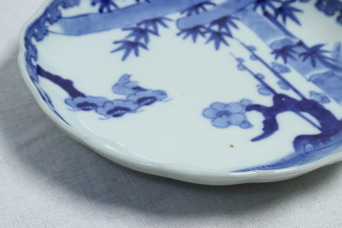 | メーカー | 4枚組 印判 染付 捻り 微塵唐草 松竹梅 七寸皿 明治前期染付松竹梅図7寸皿 |