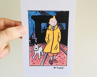 TINTIN コミックアート 木製フレーム Buy Tintin and Snowy Print: Framed Comic Art (4x6 Inches) Online