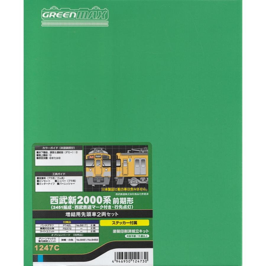 | 商品の特徴 | グリーンマックス 1247C 西武新2000系前期形(2451編成・西武鉄道。グリーンマックス 1247C 西武新2000系前期形(2451編成・西武鉄道。mid-9_1247c。GM 1247C 西武新2000系前期形(2451編成)+おまけ グリーンマックス。GREENMAX1247C西武新2000系前期形2451編成 西武鉄道マーク付増結用先頭車封は切ってますが未組立未使用ですトレージャータウンの西武用パーツをおつけします外箱は多少の痛みあります | ||