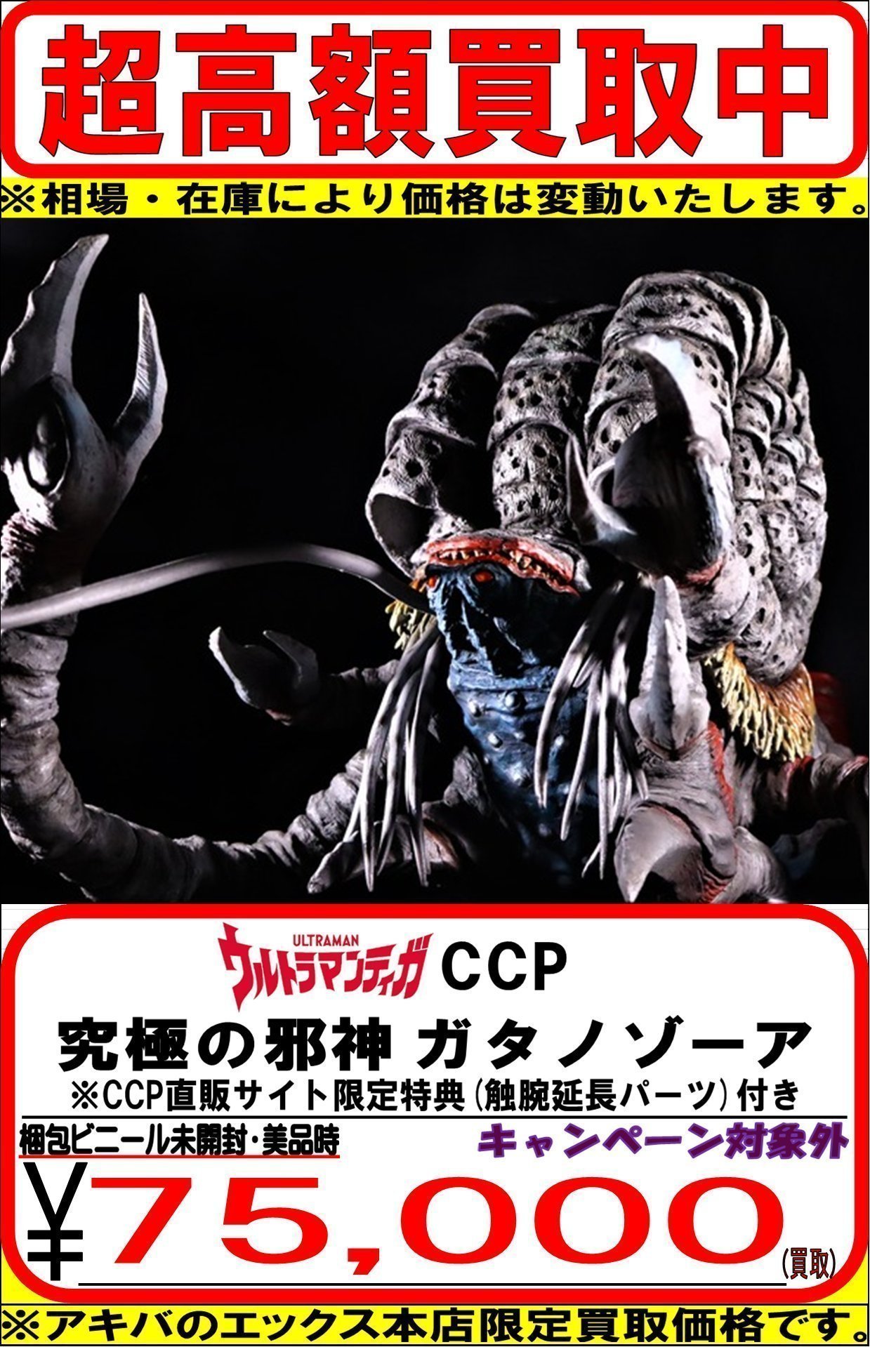 | 商品の特徴 | 新品未開封 CCP 究極の邪神 ガタノゾーア ウルトラマンティガ。CCPウルトラマンティガ 幻の究極造形 究極の邪神 ガタノゾーア 特典付。ccp ガタノゾーア [直販正規品] ソフビ ウルトラマンティガ ウルトラ。【補足】こちらの商品はccpから予約して購入しました。付属の触手も入ってます。包装も開封してない新品です。受けとってから丁寧に保管してますので、初期不良を除き不備はありません。。CCP 究極の邪神 ガタノゾーア 大型怪獣ソフビ「CCP 究極の邪神。転売品ではありません。真骨頂 仮面ライダークウガ アルティメットフォーム &ン・ダクバ・ゼバ。✨入手困難✨ DXガオハンター DXガオキング DXガオマッスル 12体 まとめ。諸事情により手放す事になりました。真骨彫製法 仮面ライダー ファイズ アクセルフォーム カブト ハイパーフォーム。2ー①極美品 グランドキング 1984年 1期初版/プラタグなし。※新品未開封のため中身の確認はしてません。⚠️当時物・貴重パワーレンジャー メガゾード ジュウレンジャー 大獣神。未開封品 DXブラックアルティメットダイボウケン 轟轟戦隊ボウケンジャー。厳重にして郵送しますが配送中の破損事故も含めノンクレームノーリターンで大丈夫な方のみご購入お願いします。未使用 東京マルイ ビオゴジ ゴジラ ラジコン GODZILLA | ||