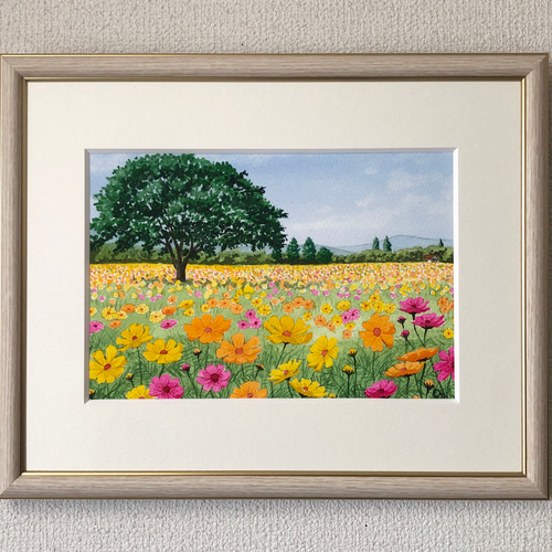 | メーカー | 透明水彩画 原画 「コスモスのフィールド01」額縁付 SMサイズ 黄花コスモスのフィールド01」透明水彩画 |