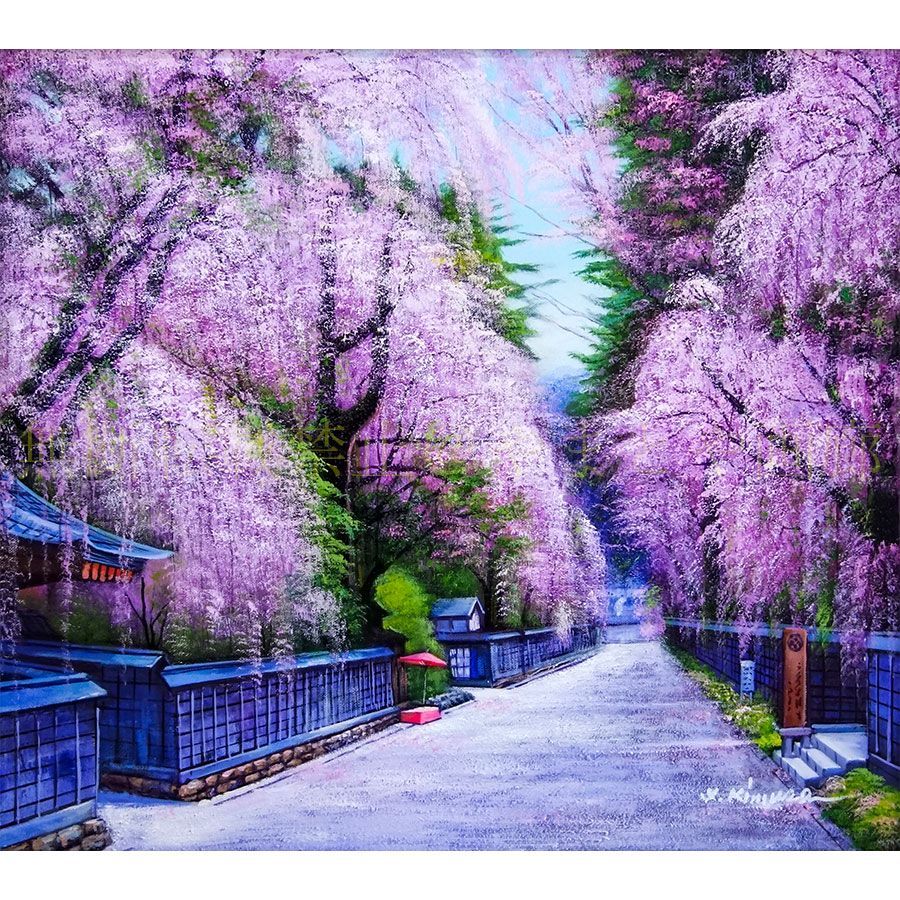 - 美術品・アンティーク・コレクション > 絵画 > k927 額装絵画 春うららかな桜を臨むすだれ滝の風景 油彩画 エレガントな額縁 k927 額装絵画 春うららかな桜を臨むすだれ滝の風景 油彩画 エレガント