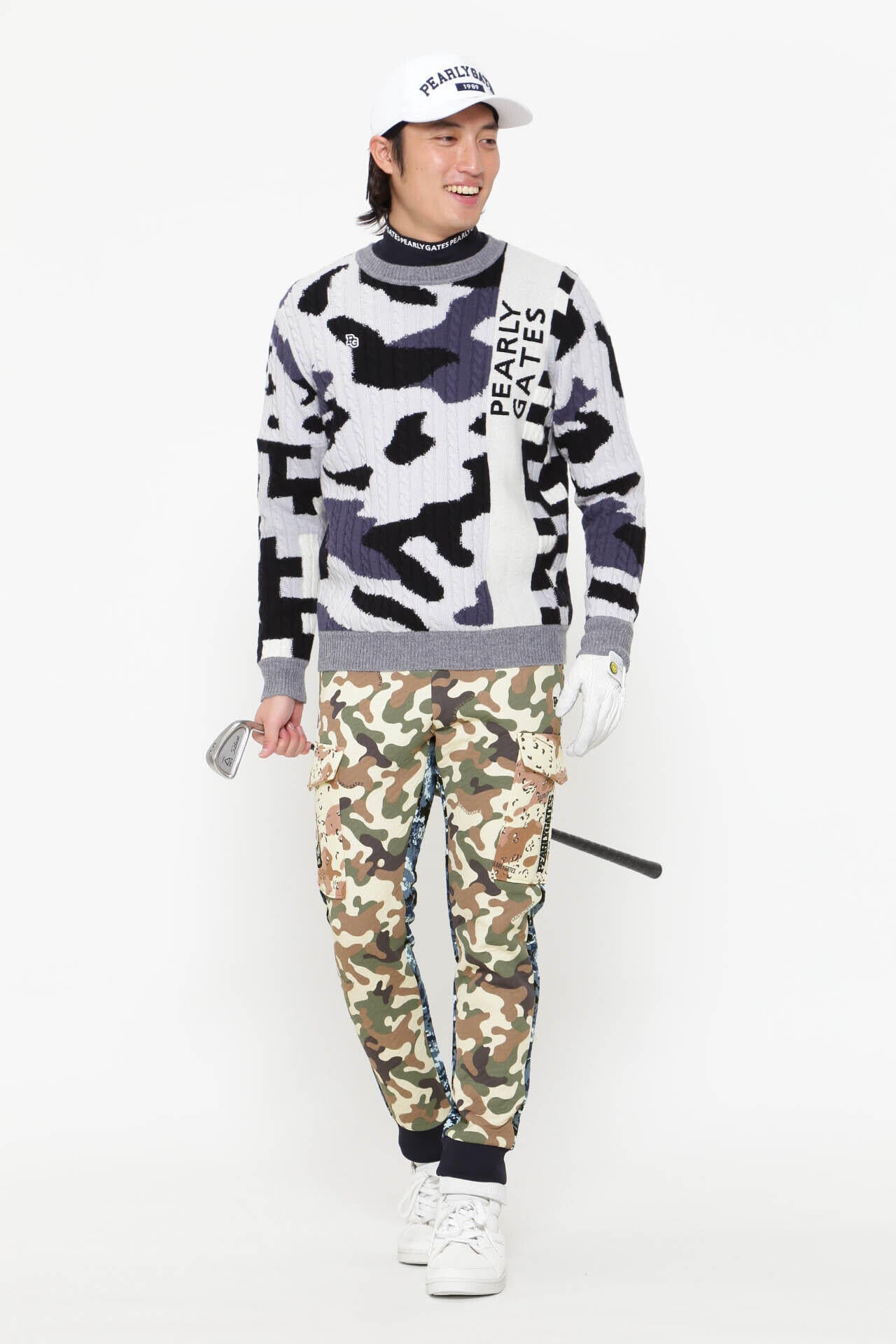- ゴルフ > メンズウェア > PEARLY GATES 30周年記念モデル カールカール カモ柄プリントパンツ マルチカモ柄 マトラッセジャガード パンツ <マルチカモ> | PEARLY