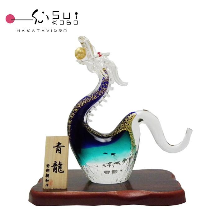 『飛龍』 博多びーどろ 工芸ガラス 阿部朝和 作 金彩 置き物 飾り 青龍 SO-105 博多びーどろ粋工房 安部朝和製作 贈答品 ギフト お祝い