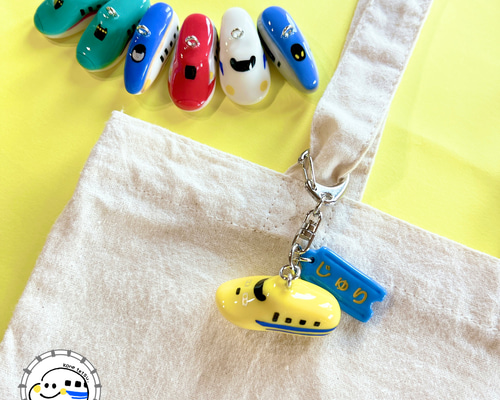 フジ 15周年記念 キーホルダーセット(おやまくん&ぽっちゃりドクロくん) ドクターイエロー】新幹線☺︎名入れ 立体キーホルダー チャーム こね
