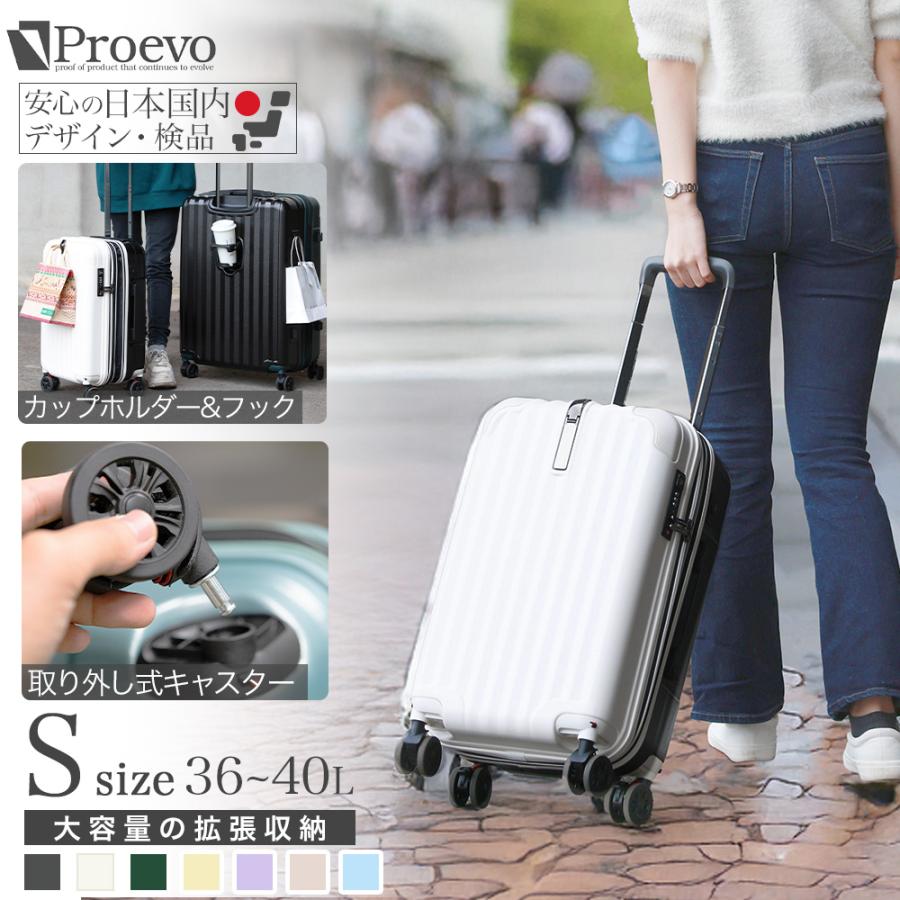 値下げ【極美品】ProevoキャリーケースSS 静音 キャスター ストッパー付き PROEVO スーツケース キャリーケース s sサイズ 機内持ち込み 2泊3日