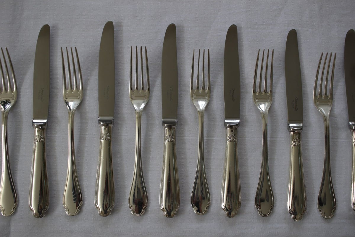 - キッチン・食器 > カトラリー(スプーン等) > クリストフル パール デザートフォーク4本セット シルバーコーティング クリストフル シルバーコーティング パール デザートナイフ&フォーク