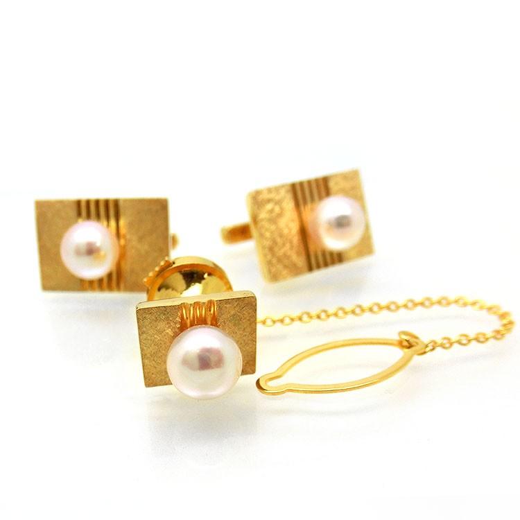 | メーカー | お値下げ■k18金イエローゴールドあこや真珠付きカフスボタン・タイピンセット■ |