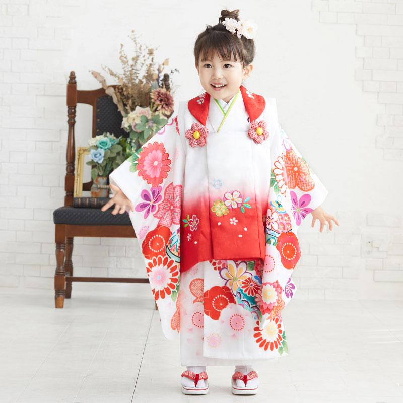 - 行事・記念品 > お宮参り用品 > 七五三 3歳 白と赤 衣装 着物被布セット 晴れ着 お祝い お宮参り 七五三 着物レンタル 3歳 753 女の子 フルセット 被布 白×白赤暈し 梅