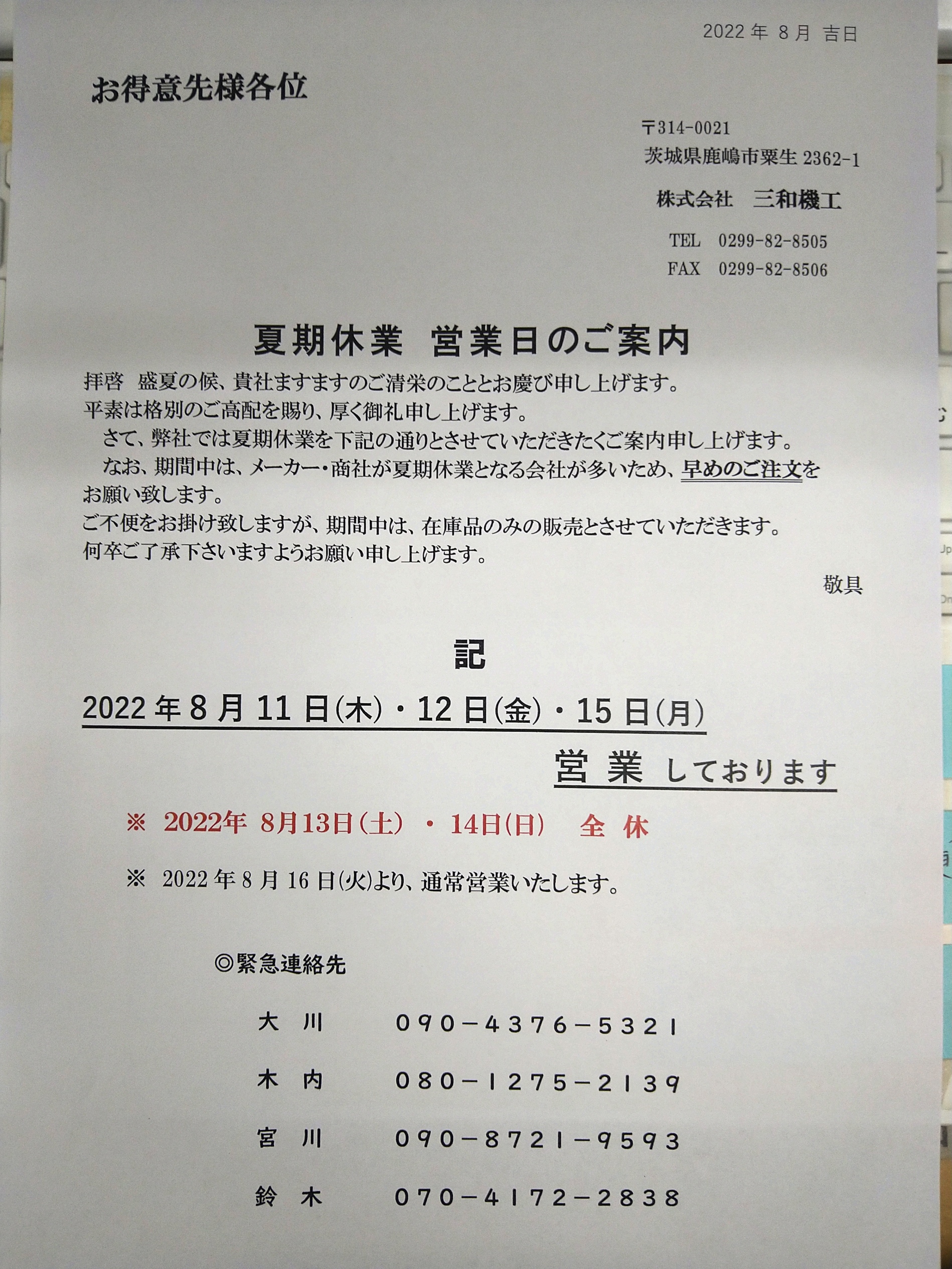 | メーカー | お客ページ 夏期休業 |
