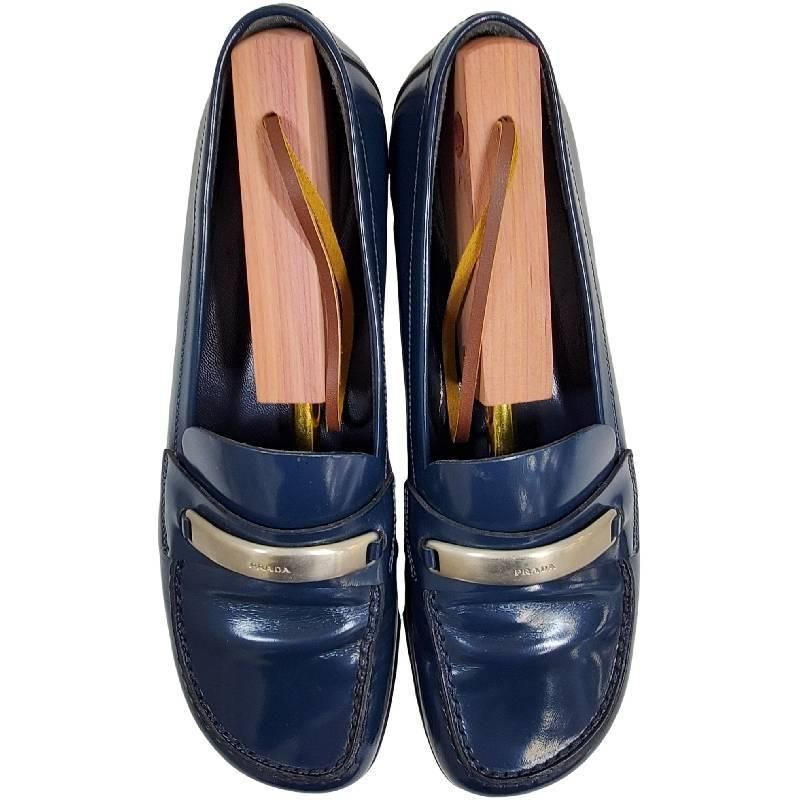 | メーカー | プラダ スクエアトゥ ロゴ プレート 金具 ネイビー EU35.5 ガラスレザー プラダ |