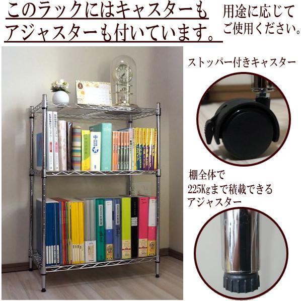 - 棚・ラック・シェルフ > スチールラック・メタルラック > 専用スチールラック キャスター付 収納棚 頑丈 ワイヤーシェルフ メタルラック メタルシェルフ スチールラック キャスター付 3段 幅60 奥行き35 高さ
