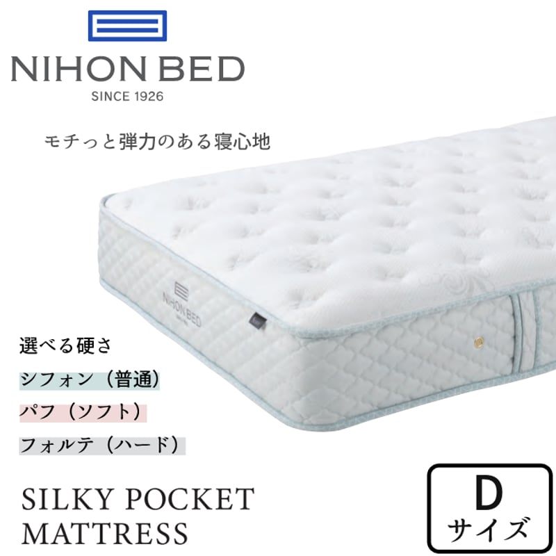 | 商品の特徴 | 日本ベッドシルキーパフ Wサイズ シルキーパフ 日本ベッド。日本ベッドのマットレス「シルキーパフ」最低価格証明の大阪新井家具。日本ベッド 【開梱設置付】日本ベッド製造 マットレス シルキーパフ。5年ほど前に客室用に購入しましたがほとんど使ってません。。AJシルキーフォルテ | 眠りから暮らしを考える日本ベッド | ||