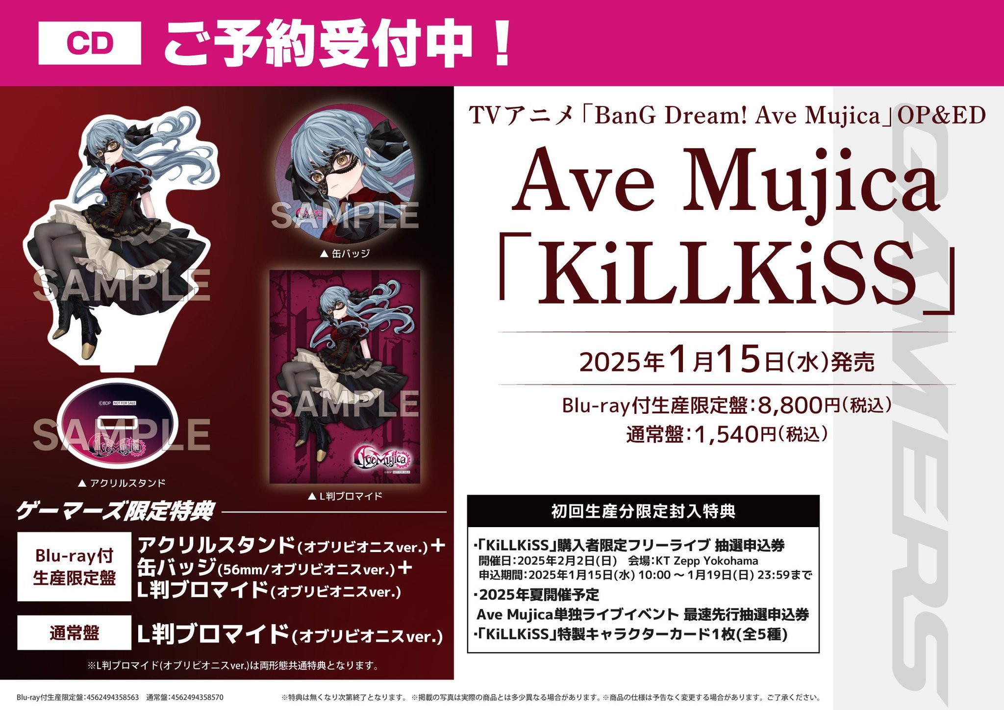 - CD > アニメ > Ave Mujica KILLKISS 購入特典キャラクターカード5種+αセット Ave Mujica KILLKISS 購入特典キャラクターカード5種+セット2 Ave