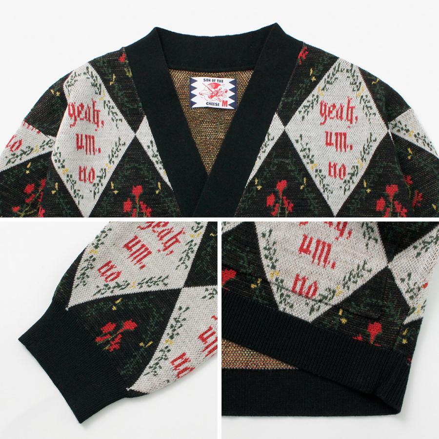 極美品son of the cheeseサノバチーズ 総柄カーディガン Lサイズ SON OF THE CHEESE(サノバチーズ) Yeah um no ニットカーディガン