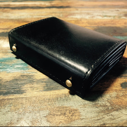 - ファッション小物 > 財布・ケース・小物入れ > エムピウ ミッレフォッリエ風 革財布 ハンドメイド 手縫い 姫路レザー 手染ブラック エムピウ ミッレフォッリエ P30モチーフ 二