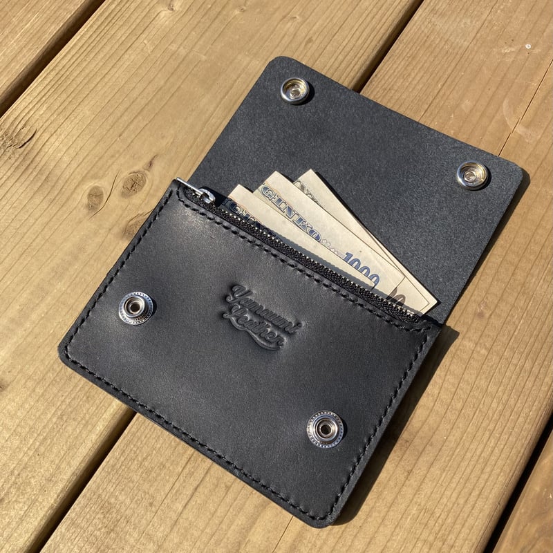 | 商品の特徴 | 国産ステアハイド トラッカーウォレット180(ロング)3層 茶芯ブラック。国産ステアハイド トラッカーウォレット180(ロング)3層 ディープ。手縫い ロングトラッカーウォレット 3層 ヌメ革 茶芯 ステアハイド。国内で最も上質と言われる、北海道の原皮を使用したフルタンニン鞣しの国産ステアハイド。染料を用いた手染めによる丘染めで、使用していく内に退色や傷によって下地が出てきたり、手垢やメンテナンス時のオイルアップ、摩擦によってタンニンが反応し色味が濃くなる等、使い方によって多種多様なエイジングを見せる茶芯レザー。仕上げには、樹脂などのコーティングは行わず、目的がそれぞれ違う3種類のオイルを順番に塗布したオイル仕上げ。【製品】トラッカーウォレット 180(ロング)3層 【皮革】国産ステアハイド 茶芯ブラック【サイズ】縦90mm×横180mm×厚み20mm(全て手作業での切り出しの為、多少の誤差が出る場合があります。予めご了承ください。)【収納】ケース×1 札入れ×2 カードポケット×3【製法】クラシック仕立て【ステッチ】ブラック【金具】ブラスゴールド(真鍮生地)【ジッパー】YKK(金具 ゴールド/生地 ブラック)※天然皮革を使用している為、多少のシワ、キズ、シミ、汚れ等がある場合がございます。※手染めによる染色の為、色斑や商品によって色味が異なる場合がございます。また、染料の色移りが起きる場合がございます。※金具の性質上、曇りや黒ずみ、錆、傷等がある場合がございます。特に真鍮生地は黒ずみや錆がよく見られます。予めご了承ください。※お使いのモニター設定、ご覧頂く環境によって実際の商品と色味が異なる場合がございます。※ 当方の出品している全ての商品はNCNRでお願いします。#レザークラフト#ハンドメイド#トラッカーウォレット#バイカーズウォレット#ロングウォレット#茶芯レザー#ステアハイド#ヌメ革#アメリカンチープ。国産ステアハイド トラッカーウォレット180(ロング)3層 ディープ。にんじん。Porter Classic ポータークラシック。ひめ iQOSケースデコ。レザーカービングロングウォレット。【ヴィンテージ】レッドムーン製 BC-02C 黒レザーの長財布。雪うさぎ 7。T様オーダーページ。Coneliaさま専用。MARC JACOBS 二つ折り財布。未使用 S.T.デュポン ライン2 ライターケース ギャッツビーレザー 箱付き。IQOS イルマ i プライム セレッティ モデル 限定モデル。さくら♡リバティ | ||