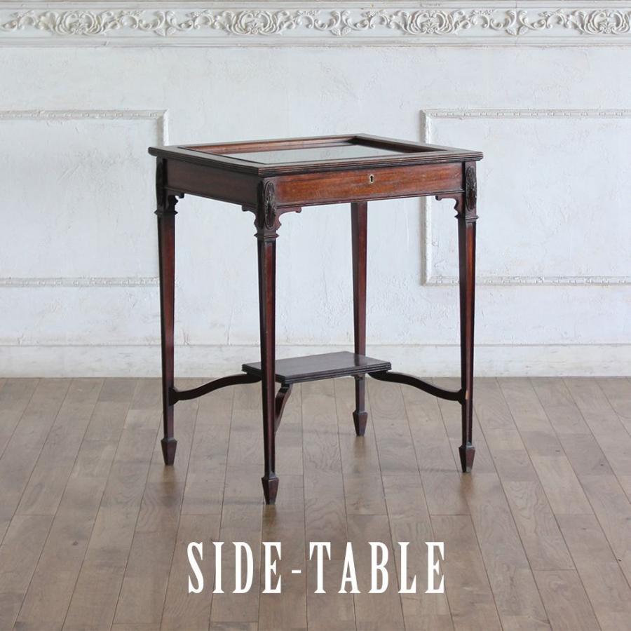 アンティーク イギリス家具 木製サイドテーブル コーヒーテーブル ビンテージ 送料無料 アンティーク家具 サイドテーブル ショーケース ガラス