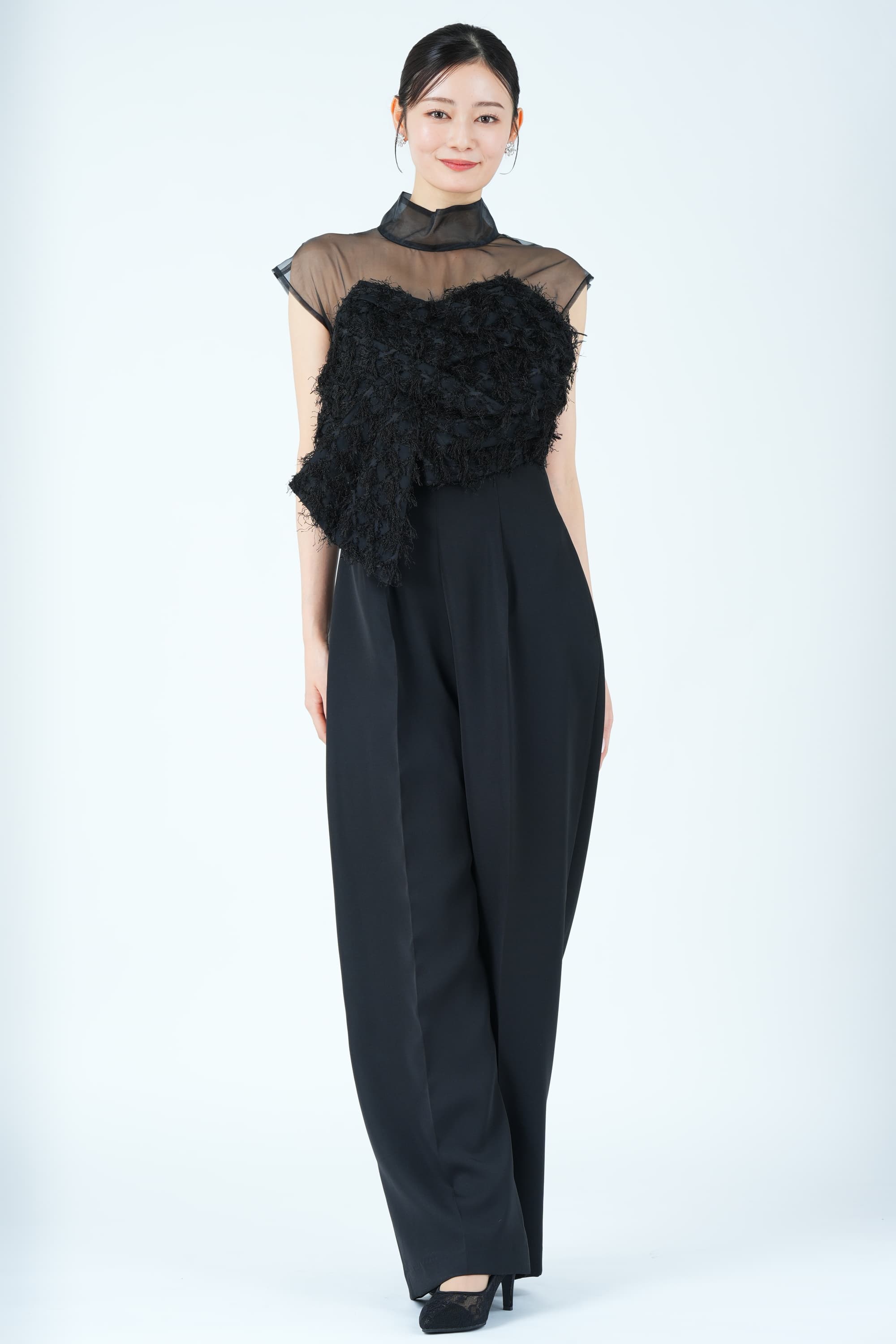 - レディース > スーツ・フォーマル・ドレス > パンツドレス ラグナムーン カットジャガードベアパンツドレス ブラック Sサイズ LAGUNAMOON カットジャガードベアトップ風ブラックパンツドレス (S) を