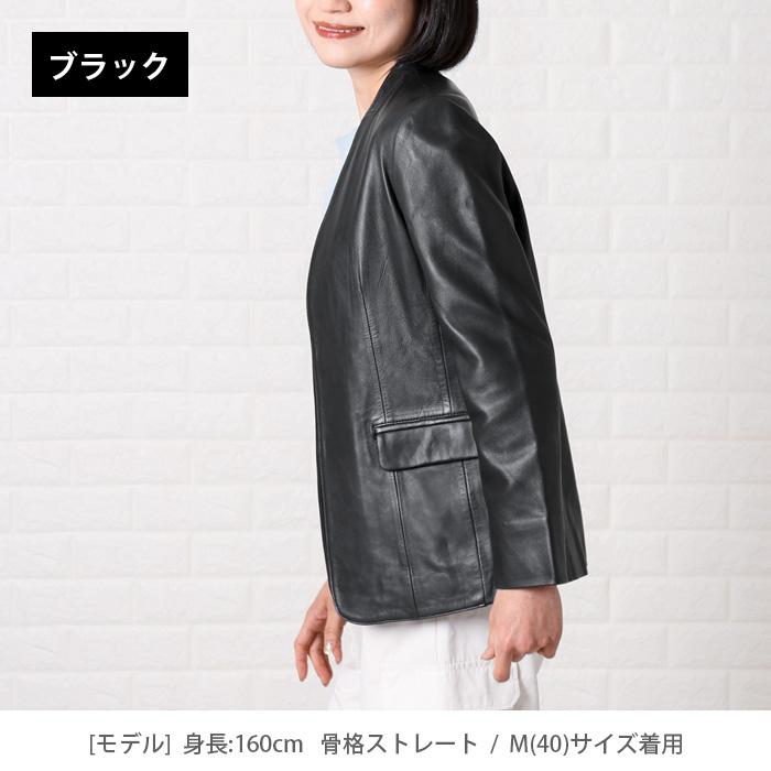 - レディース > ジャケット・アウター > 【美品】自由区 ラムレザー ノーカラー ジャケット ブラック 40 L レザージャケット ノーカラー テーラード 革ジャン レディース 秋冬 本