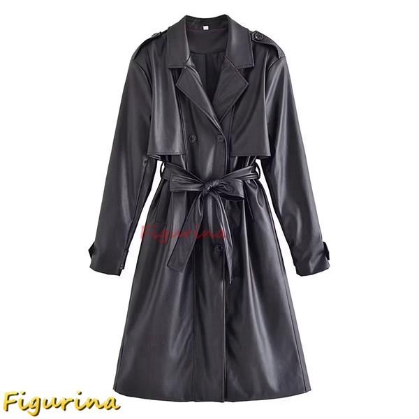 - レディース > ジャケット・アウター > 新品 未使用 ベルト付き ✨️ 本革 羊革 レザーコート ダブル L 黒 トレンチコート レディース PUレザーコート ロング丈 ダブルブレスト